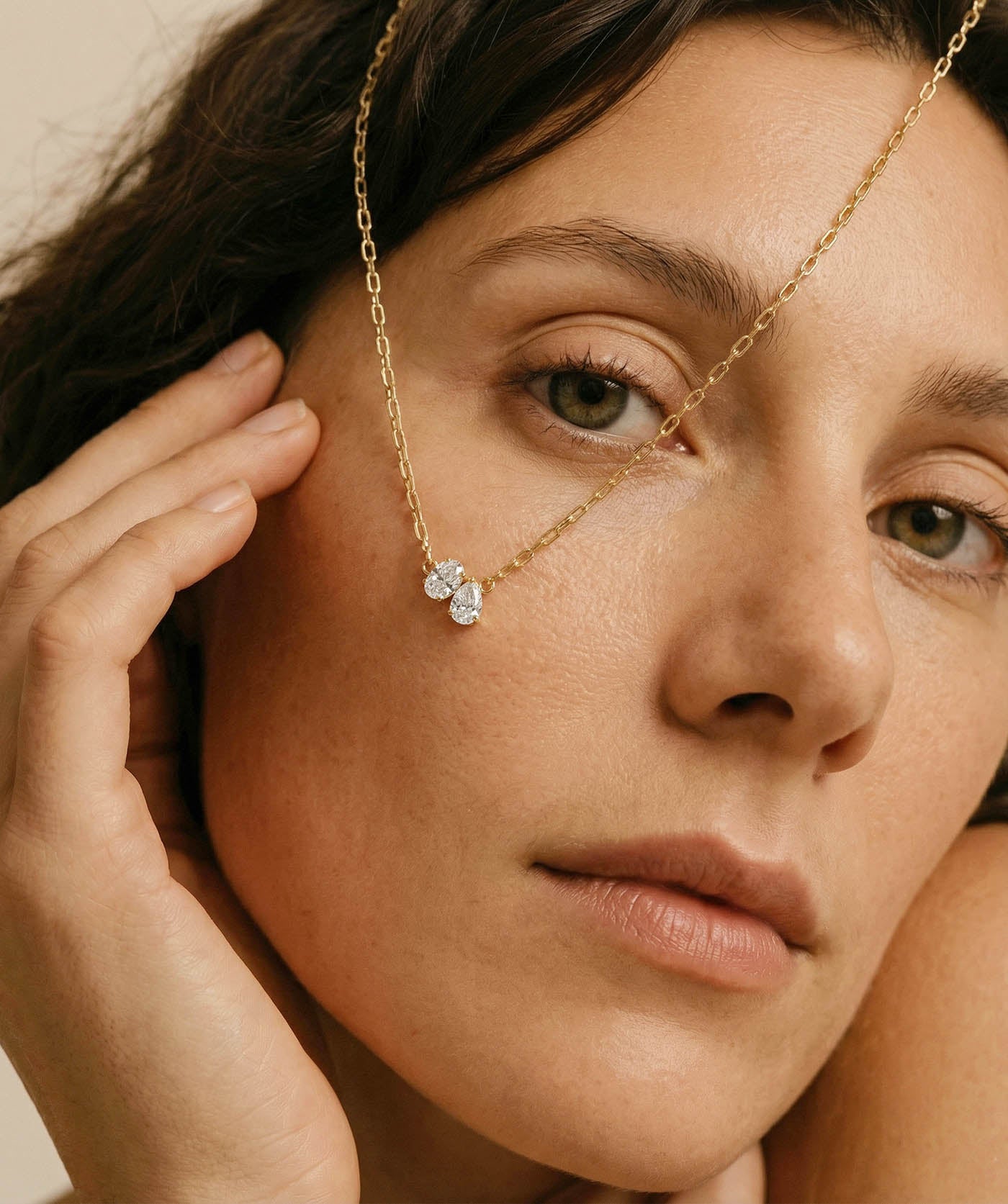 Oval & Pear Duo Necklace – Paperclip Chain