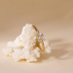 This timeless ring perfectly balances symmetrical structure and sparkling clarity. The classic bezel setting reflects light in every direction, ensuring your diamond always shines brightly.