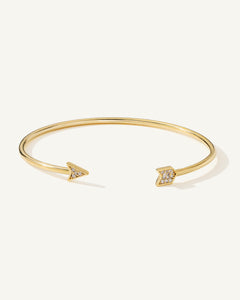 A dainty and simple arrow cuff bracelet with sparkling clear CZ inlay. The arrow symbol represents defense and protection from harm.