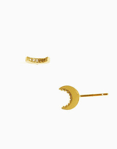 A sliver of the moon is represented with these lunar studs, displaying beauty and mystical allure in tones of gold. Each stud is dusted with sparkling crystal stones, elevating these charming earrings to a whole new level. Against the lobes, these studs are raised rather than lying flat, creating a genuinely modern silhouette that boldly stands out.