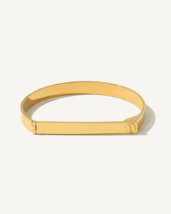 This gleaming gold bangle sends chic sensation to any look. Flat at the base, the bangle comes with a utilitarian screwdriver for personalized pre-evening formation.