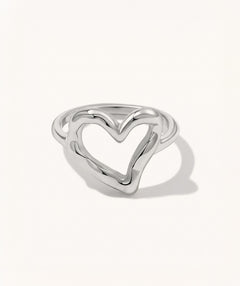 Sculptural open-heart ring with a high-polish finish and softly contoured texture—fluid, modern, and made to stand out. A meaningful symbol of love and friendship.
