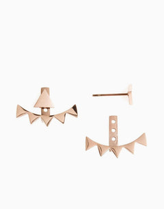 Ultra edgy and elegant rose gold encapsulates an extremely modern silhouette in these stunning ear jackets. Created to stand out in a sophisticated way, each jacket features a row of daring spikes, penetrating through style boundaries with ease. Created with different slots to fit any lobe, these jackets also have a triangle stud accompaniment for ultimate uniqueness.